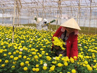 ដើម្បីផ្គត់ផ្គង់ឲ្យទីផផ្សារនូវទងផ្កាស្អាតជាទីបំផុតក្នុងបុណ្យតេតជាប្រពៃណី។លោក Nhuanនៅមានបំណងថែមទៀតថា៖នឹងនាចេញផ្កានៃភូមិHa Dongទៅទីផ្សារនៅជប៉ុន