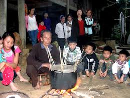 VOV-ឈរគោរពសំពះនៅពីមុខតុសក្ការៈបូជា លោក Ca Van Dinh បួងសួង សូមជីដូនជីតាជួយតាមថែរក្សាឲ្យគ្រួសារក្នុងឆ្នាំថ្មីទទួលបានគ្រប់ប្រការ បណ្ដា សមាជិកក្នុងគ្រួសារមានសុខភាពល្អបរិបូរ កូនចៅរកស៊ីធូរធារៀនសូត្រពូកែ។ ថ្ងៃនេះជាថ្ងៃទី៤ខែទីមួយតាមច័ន្ទកតិ គ្រួសារលោកបានធ្វើស្ពកបាយដើម្បីបញ្ចប់