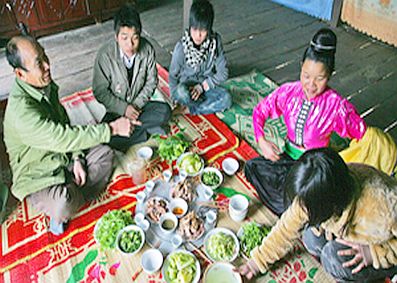 ការធ្វើសក្ការៈបូជាគឺរបស់មនុស្សប្រុស រីឯការដាំបាយលក់ទិញសំអាតផ្ទះជា រឿងរបស់មនុស្សស្រី។ ជនជាតិ Thai មិនសូវជ្រើសរើសម្ហូបអាហារទេ ប៉ុន្តែក្នុង