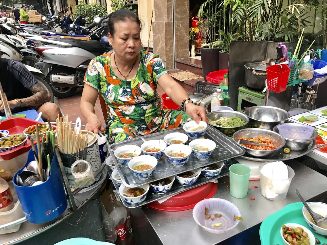 ជាធម្មតា ការងារក្នុងថ្ងៃរបស់អ្នកនាង Khanh គឺចាប់ផ្តើមពីការទៅផ្សារ Thanh Ha (នៃខ័ណ្ឌ Hoan Kiem រដ្ឋធានីហាណូយ) ពីម៉ោង៦ព្រឹក ដើម្បីជ្រើសរើសទិញខ្យងនិងគ្រឿងផ្សែផ្សំចាំបាច់។ មុខម្ហូបនេះមើលទៅហាក់ដូចជាស្រួល ប៉ុន្តែតាមពិតទៅវាត្រៀមទារការមត់ចត់របស់អ្នកធ្វើ។ ដោយសារមានរូបមន្តដោយឡែករបស់ខ្លួន បានជាហាងលក់ខ្យងស្ងោរបស់អ្នកស្រី Khanh បានទាក់ទាញមិនត្រឹមតែភ្ញៀវក្នុងស្រុកប៉ុណ្ណោះទេ សូម្បីតែភ្ញៀវបរទេសគេក៏ចង់ភ្លក់នូវប្រភេទម្ហូបនេះផងដែរ។ ជាអ្នកចូលចិត្តទេសចរណ៍និងម្ហូបអាហារវៀតណាម មិត្តហិរញ្ញ និស្សិតកម្ពុជាកំពុងសិក្សានៅសាលាសេដ្ឋកិច្ចហាណូយបានឲ្យដឹងថា៖ “នាងខ្ញុំកំពុងតែញ៉ាំអាហារនៅហាងរបស់អ៊ុំស្រីម្នាក់ដែលជាជនពិកាហើយបុគ្គលិកនៅទីនេះក៏ជាជនពិកាដែរ។ មិនតែប៉ុណ្ណោះហាងនេះក៏មានលក្ខណៈពិសេស មែនទែន នាងខ្ញុំចង់ញ៉ាំនៅហាងនេះដោយសារចង់ដឹងរសជាតិម្ហូបវៀតណាម។ ម្ហូបនៅទីនេះពិតជាឆ្ងាញ់មែនសំរាប់ទាំងខ្យង់និងទឹកជ្រលក់។អ្វីដែលទាក់ចិត្ត នាងខ្ញុំគឺមិនថានេះគឺជាលើកទីមួយទេគឺភាគច្រើនចុងសប្តាស៍ខ្ញុំនិងមិត្តភ័ក្តក៏ បបួលគ្នាមកទីនេះដែរ។ដើមហេតុដែលធ្វើឲ្យនាងខ្ញុំស្គាល់កន្លែងនឹងដោយសារ ជនជាជាតិវៀតណាមដែលមិត្តភ័ក្កិរៀនជាមួយនាងខ្ញុំ។គេធ្លាប់នាំខ្ញុំមកនៅទីនេះញ៉ាំម្តងទាល់ពេលញ៉ាំម្តងឆ្ងាញ់ហើយលើកក្រោយខ្ញុំក៏នឹកចង់មកញ៉ាំម្តងទៀត។ខ្ញុំក៏បបួលមិត្តភ័ក្តិខ្មែររៀនជាមួយគ្នាមកនេះផងដែរ។ពេលនេះគឺថាបានទៅញ៉ាំផ្ទាល់ ទើបបានដឹងថាម្ហូបនេះឆ្ងាញ់ប៉ុន្មាន។”