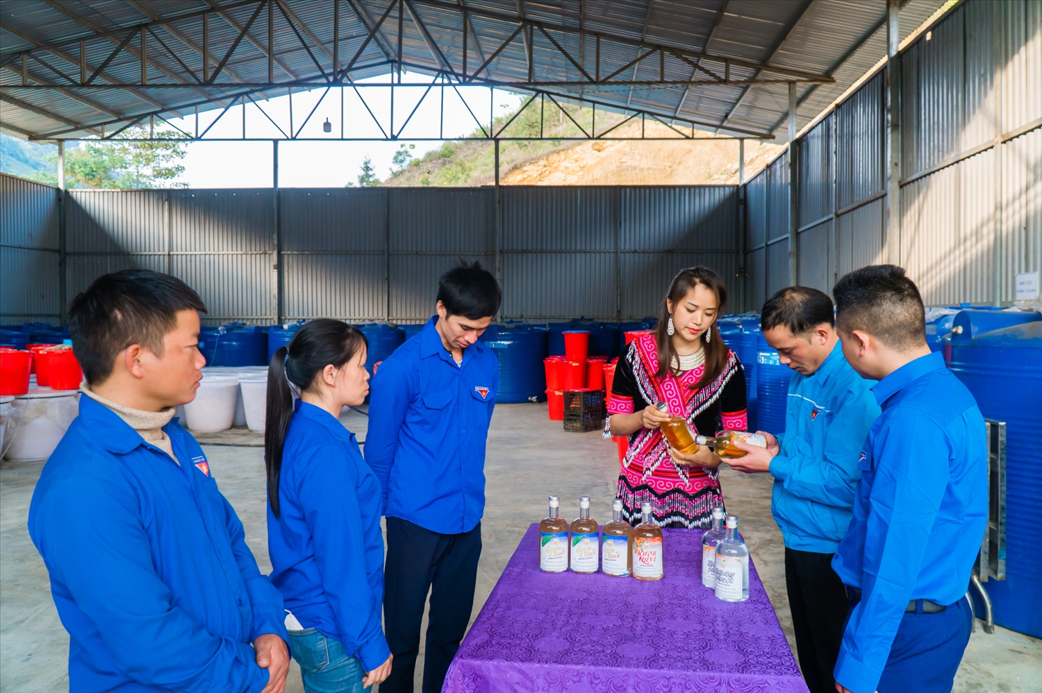 កញ្ញា Ma Thi Chu ពិនិត្យប្រេងចម្រាញ់ដែលផលិតពីកសិផល (រូបថត៖ baodantoc.vn)