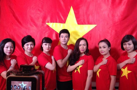 | យុវជនវៀតណាមសម្តែងសេចក្តីស្នេហារជាតិតាមរយៈអាវយឺត មានរូបទង់ជាតិ(រូបថតៈ dantri.vn) |