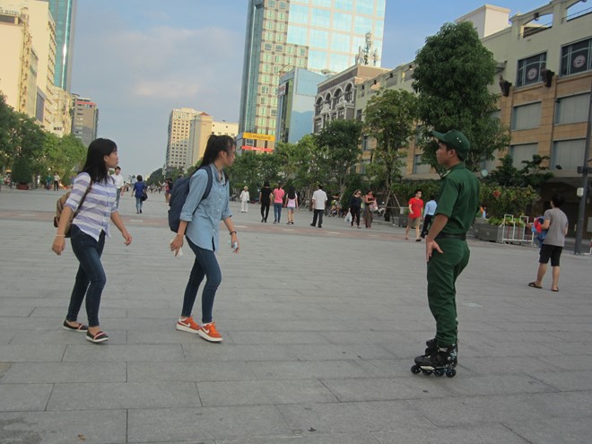 ការផ្ដើមគំនិតច្នៃប្រឌិតដើរប៉ាតាំងយាមល្បាតវិថីដើរថ្មើជើង Nguyen Hue ត្រូវ