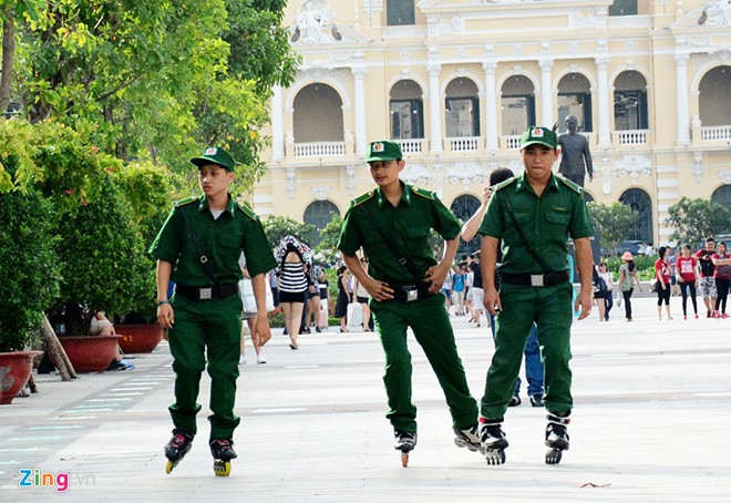 | កម្លាំងយុវជនស្ម័គ្រចិត្តដើរប៉ាតាំងយាមល្បាតវិថីដើរថ្មើជើង Nguyen Hue (រូបថត៖Zing) |