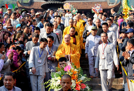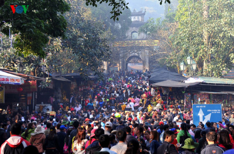 ជាមួយជំនឿសាសនា។ ចូលរួមពិធីបុណ្យវត្ត Huong បានធ្វើអោយមនុស្សគ្រប់រូប់បំ