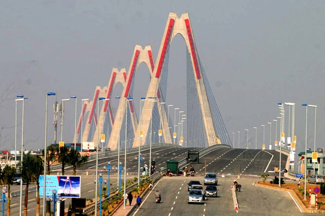 | ស្ពានថ្មីបំផុតគឺស្ពានខ្សែរកាបទំនើប Nhat Tan ដែលបានដាក់ឲ្យដំណើរការ នាថ្ងៃទី ៤ មករា ឆ្នាំ ២០១៥ ដោយមានប្រវែង ៣,៩ គីឡូម៉ែត្រ។ (Image: VOV) |