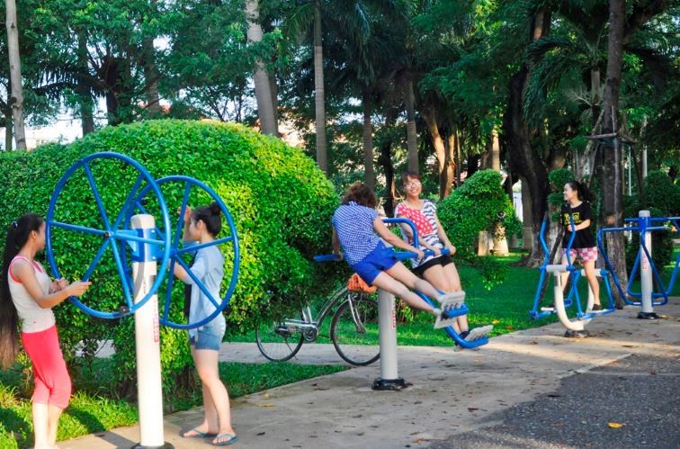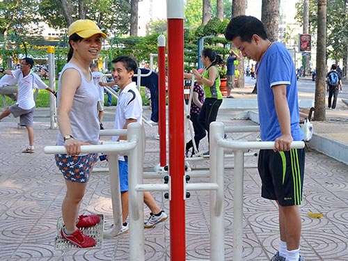 នាព្រឹកព្រលឹមនិងរសៀលជារៀងរាល់ថ្ងៃ នៅបណ្ដាឧទ្យាននិងសួនផ្កា នានាលើភូមិភាគទីក្រុងហាណូយ មនុស្សទាំងចាស់ទាំងក្មេងយ៉ាងច្រើនកុះករនាំគ្នា មកកហាត់ប្រាណដោយឧបករណ៍។ មានឧបករណ៍ពី ១០ដល់៣០គ្រឿងដែលត្រូវបានដម្លើងនៅក្នុងបរិវេណឧទ្យានឬសួនផ្កា។ ឧបករណ៍ទាំងនេះសុទ្ធតែងាយស្រួលប្រើប្រាស់ ហើយបម្រើល្អនូវតម្រូវការហាត់ ប្រាណជាសារវ័ន្តដូចជា ហាត់ពោះ ហាត់ខ្នង ហាត់ជិះកង់ ហាត់ដើរដោយថ្មើជើង ហាត់លើកអាកទ័រទោល ហាត់លើកអាកទ័រគូ ជាដើម។ ជាពិសេស ការប្រើប្រាស់ ឧបករណ៍ទាំងនេះឥតគិតថ្លៃទេ។ លោក Tran Hoang Trung នៅខ័ណ្ឌ Long Bien ទីក្រុងហាណូយ ឲ្យដឹងថា ចាប់ពីពេលមានឧបករណ៍មក មនុស្សមកហាត់ ប្រាណកាន់តែច្រើនពីមួយថ្ងៃទៅមួយថ្ងៃ។