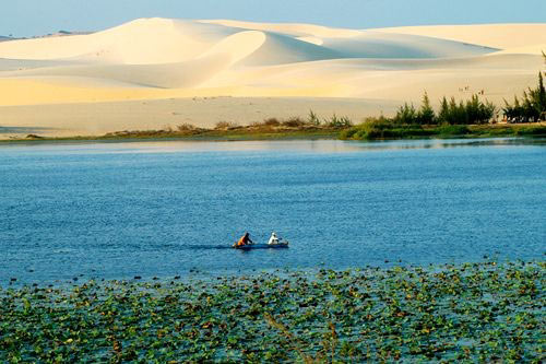 ប្រការពិសេសដោយឡែកមួយទៀតដែលធ្វើឲ្យភ្ញៀវទេសចរនិយមចូលចិត្តនោះគឺ នៅកណ្ដាលវាលខ្សាច់ធំល្វឹងល្វើយនេះមានបឹងទឹកសាបមួយដែលត្រូវ បានគ្រប់ដណ្ដប់ដោយផ្កាឈូក ហើយត្រូវបានព័ទ្ធជុំវិញដោយជួរដើមឈើនិង ទួលភ្នំខ្សាច់ខ្ពស់ៗ។ សម្រាកនៅក្រោមម្លប់ដើមឈើ ផឹកទឹកដូងត្រជាក់ផ្អែម ញ៉ាំ ម្ហូបបាញ់ត្រាងជាមួយទឹកជ្រលក់បង្គា ហើយរីករាយជាមួយអារម្មណ៍លេងកំសាន្ត នៅលើខ្សាច់ក្ដៅ នោះគឺអ្វីៗដែលលោកអ្នកមិនអាចរំលងបាននៅពេលមក ដល់ឋានសួគរបស់ពន្លឺ ខ្យល់និងខ្សាច់។