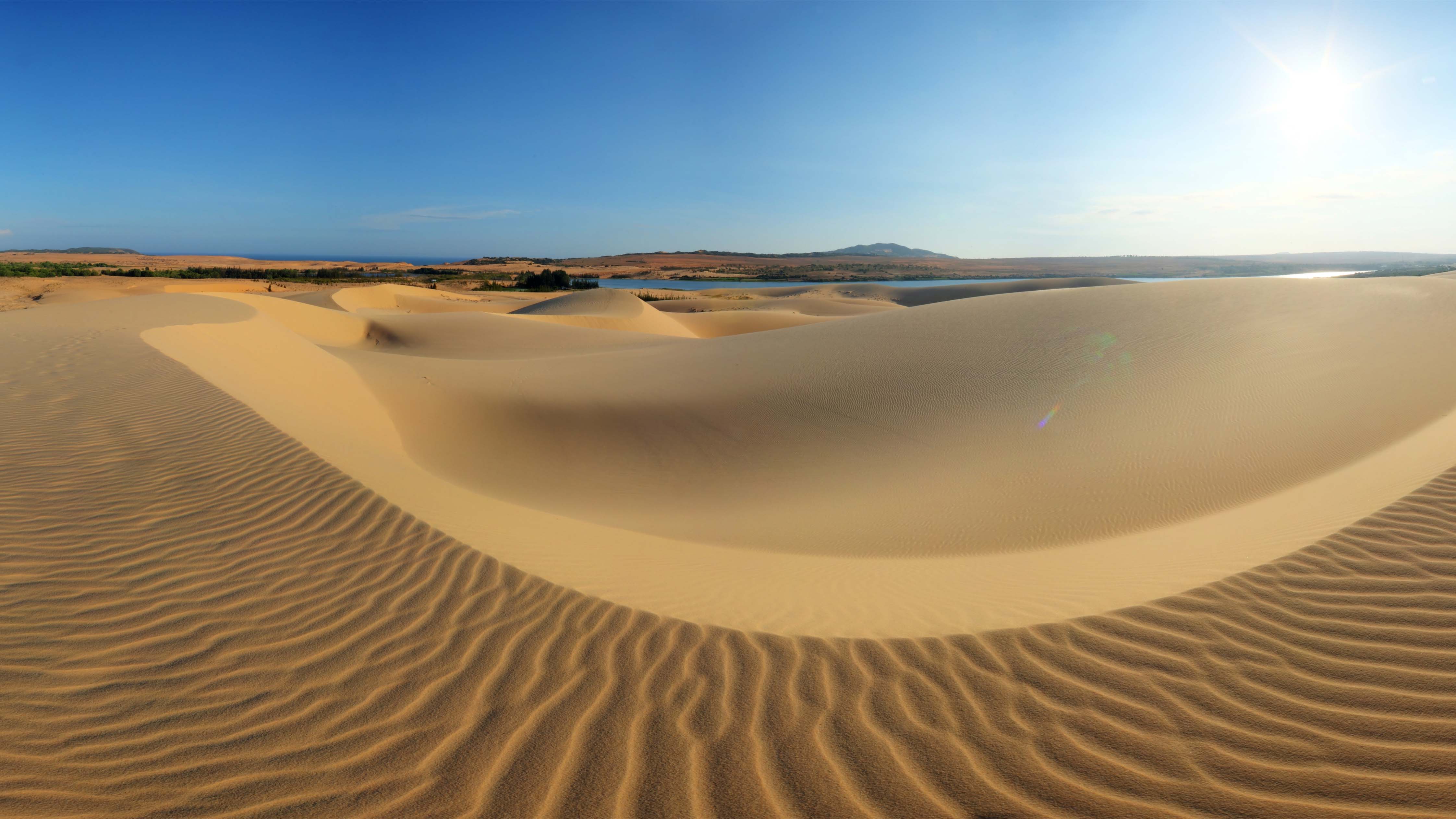 ទួលភ្នំខ្សាច់ Bay ស្ថិតនៅខេត្ត Binh Thuan ហើយលាតសន្ធឹងទៅដល់ខេត្ត Ninh Thuan នៅផ្ទៃដៃចំនួន៥០ហិកតា ប៉ុន្តែតំបន់ស្អាតបំផុតគឺនៅ Mui Ne ដែល ស្ថិតនៅចម្ងាយចំនួន២០គីឡូម៉ែត្រពីទីក្រុង Phan Thiet។ ទួលភ្នំខ្សាច់នេះ ត្រូវ បានចាប់ប្រភពមុននេះរាប់រយឆ្នាំពីអណ្ដូងរ៉ែដែក។ ទីនេះមានឈ្មោះថា ទួល ភ្នំខ្សាច់ Bay (ហោះ) ដោយសារខ្យល់បក់ធ្វើឲ្យខ្សាច់ហោះ ហើយធ្វើឲ្យរូបរាងរបស់ ទួលភ្នំខ្សាច់នេះផ្លាស់ប្ដូរជាបន្តបន្ទាប់។ លោក Nguyen Thanh Khoa ប្រជាពល រដ្ឋមួយនាក់នៅសង្កាត់ Mui Ne ទីក្រុង Phan Thiet បានឲ្យដឹងថា៖