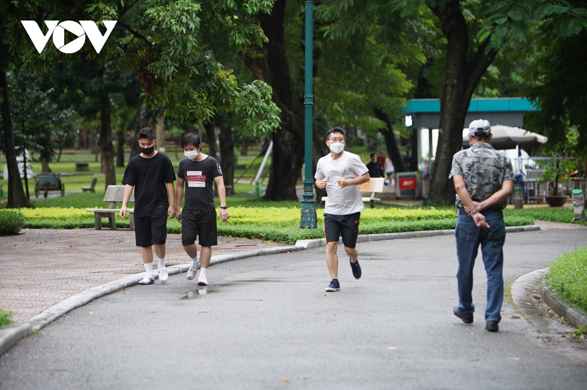 ប្រជាជនទីក្រុងហាណូយទៅហាត់ប្រាណនៅក្នុងឧទ្យានក្រោយពីបញ្ចប់រយៈពេលរក្សាគម្លាតសង្គម។ (រូបថត៖ VOV) |