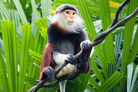 (VOVworld) - ឧបទ្វីប Son Tra នៅទីក្រុង Da Nang ភាគកណ្ដាលវៀតណាម ត្រូវបានស្គាល់ដល់គឺជា «រាជាណាចក្រ» នៃសត្វពានរៈកម្របំផុត មិនត្រឹមតែនៅវៀតណាម ប៉ុណ្ណោះទេ ថែមទាំង លើពិភពលោក ទៀតផង។ នេះគឺជាសត្វ Vooc cha va ជើងពណ៌ត្នោត។ ដោយមានរោមពណ៌រទាំង ៥ Vooc cha va ជើងពណ៌ត្នោត ឬហៅថា៖ Vooc cha ba ជើងពណ៌ក្រហមឬ Vooc ពណ៌ទាំង ៥ ប្រភេទនេះត្រូវបានអង្គការការពារសត្វព្រៃ អន្តរជាតិលើកដម្កើងជា «ព្រះមហាក្សត្រត្រីយានី» នៃសត្វពានរៈគ្រប់ប្រភេទដោយសារភាពស្អាតចំឡែករបស់ខ្លួន។ Vooc cha va ជើងពណ៌ត្នោតត្រូវបានរកឃើញនិងស្រាវជ្រាវពីឆ្នាំ ១៩៦៩។ រហូតមកដល់ពេលនេះ អ្នកស្រាវជ្រាវនៅក្នុងប្រទេសនិងអន្តរជាតិយ៉ាងហោចណាស់ចំនួន ៥ ក្រុមបានធ្វើការស្រាវជ្រាវជាលំអិតអំពីប្រភេទពានរៈកម្រពិសេសនេះដែលស្ថិតនៅកំរិតគ្រោះថ្នាក់បំផុត (កំរិត E ប្រភេទសត្វព្រៃ មានហានិភ័យសាបសូន្យខ្ពស់បំផុតក្នុងធម្មជាតិ) ក្នុងសៀវភៅក្រហមរបស់វៀតណាម។ គិតដល់ឆ្នាំ ២០១០ ប្រភេទសត្វព្រៃនៅទីនេះមានចំនួន ៣០០ ក្បាល ស្រុបយក ៣០% ចំនួន Vooc cha va ជើងពណ៌ត្នោតនៅវៀតណាម។