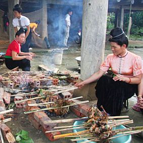 អាហាររបស់ជនជាតិ Thai។ បងស្រីបាន Mien បានឲ្យដឹងថា នារដូវទេសចរណ៍ គាត់ត្រូវគៀងគរបន្ថែមគ្រួសារចំនួន៣ឫ៤ទៀតចូលរួម។