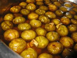 ផ្លែ sau ខ្ចីត្រូវបានកោសសំបក ស្រុះទឹកក្តៅ ហើយត្រាំជាមួយសាច់ជូរឬទឹក