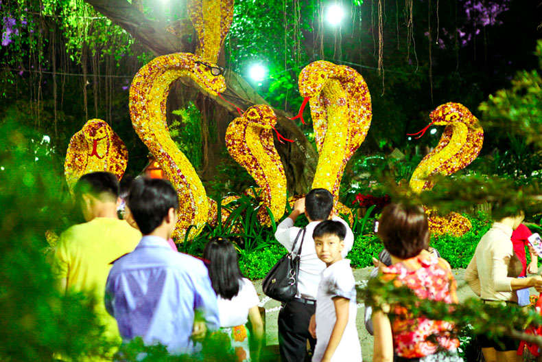 បុណ្យតេតប្រពៃណីជាតិវៀតណាម។ បុណ្យផ្កានិទាឃរដូវឆ្នាំម្សាញ់សំរិទ ២០១៣ ត្រូវបានរៀបចំឡើងនៅឧទ្យាន Tao Dan នៅ ទីក្រុងហូជីមិញ (ភាគខាងត្បូងវៀតណាម)