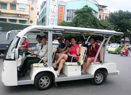 បឹង Hoan Kiem នោះ រថយន្តអាគុយនឹងជូនភ្ញៀវទេសចរទៅទស្សនាទីកន្លែងល្បី