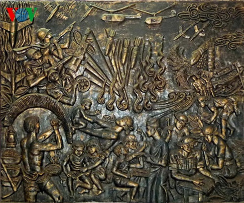 Vinh Moc ភ្ញៀវទេសចរនឹងចាប់អារម្មណ៍ខ្លាំងចំពោះជួរអក្សរធំមួយ ក្នុងបន្ទប់តាំង