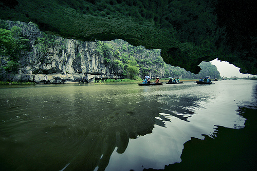 នៅ Tam Coc គឺទូក។ភ្ញៀវទេសចរអាចចូលរួមចែវទូកហើយគយគន់ទេសភាព