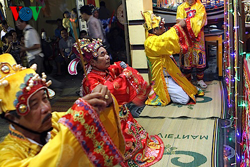 | សមាជិកនៃក្រុមសែនព្រេនត្រីខេត្ត Ninh Thuan បានមកកាន់វិហារ Phu Cau ខ័ណ្ឌទី ៦ ទីក្រុង Tuy Hoa ដើម្បីជូនរឿងសែន។ |