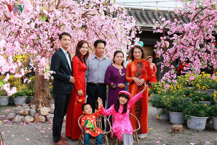 | ជំនាន់ទាំង៣ក្នុងក្រុមគ្រួសារផ្ដិតយកពេលវេលាជួបជុំគ្នាកក់ក្ដៅនៃនិទាឃរដូវ។ |