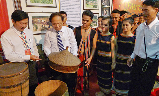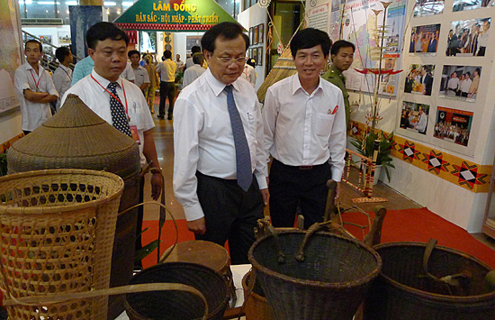 | លោក Hoang Tuan Anh រដ្ឋមន្ត្រីក្រសួងវប្បធម៍កីឡានិងទេសចរណ៍វៀតណាម កំពុងទស្សនាបណ្ដា ស្តង់តាំងបង្ហាញនៅការតាំងពិព័រណ៍ “Tay Nguyen ជាប្រពៃណីនិងការអភិវឌ្ឍន៍” |
