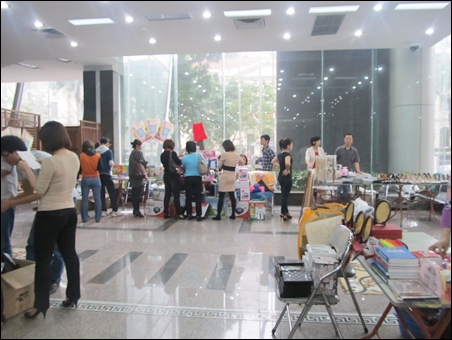 | នៅសាលធំ មាស្តង់ទំនិញជាច្រើន។ |