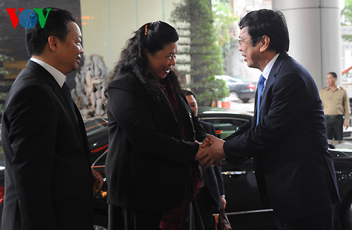 អគ្គនាយក VOV លោក Nguyen Dang Tien ធ្វើការរកិច្ចអនុប្រធានរដ្ឋ សភា លោកស្រី Tong Thi Phong ដែលបានអញ្ជើញមកធ្វើទស្សនកិច្ចការងារនៅ VOV នាព្រឹកថ្ងៃទី ១ មិនា។