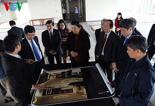អនុប្រធានរដ្ឋសភា Tong Thi Phong ចុះទស្សនាទីកន្លែងធ្វើការរបស់កម្មាភិបាល អ្នកយកព័ត៌មានរបស់កាណាល់ទូរទស្សន៍ VOV។