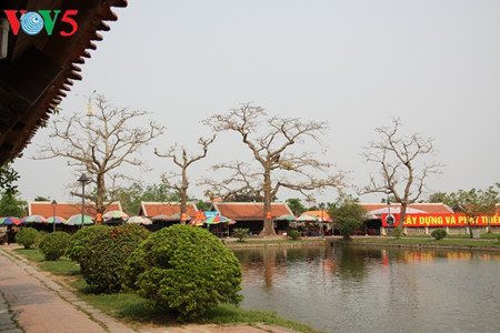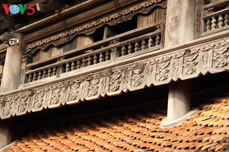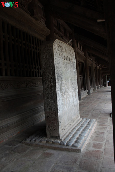 | សិលាចរឹតពោរពេញទៅដោយអត្តសញ្ញាណនៃស្ថាបត្យកម្មនៃរជ្ជកាល Le ស្ថិតនៅទីធ្លាខាងមុខសាលធំ Tien duong។ |