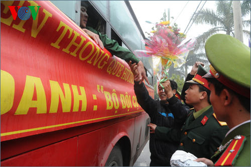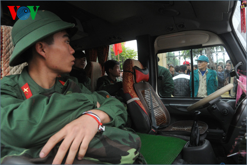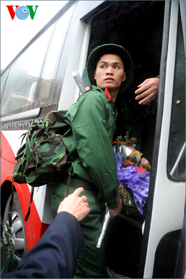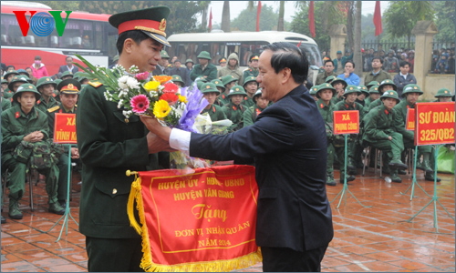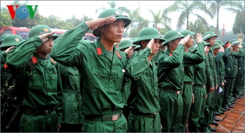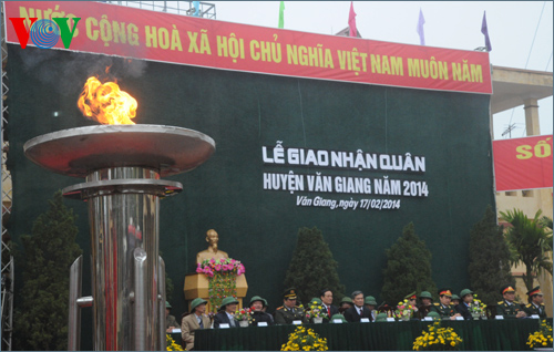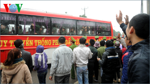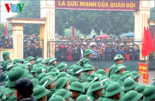 នាព្រឹកថ្ងៃទី ១៧ កុម្ភៈ បើទោះបីភ្លៀងកំពុងធ្លាក់ក្តី ប៉ុន្តែ យុទ្ធជនថ្មីនានានៅស្រុក Van Giang ខេត្ត Hung Yen (ភាគខាងជើងវៀតណាម) សុទ្ធតែមានវត្តមាន ក្នុងពិធីទទួល យុទ្ធជនបំពេញកាតព្វកិច្ច។