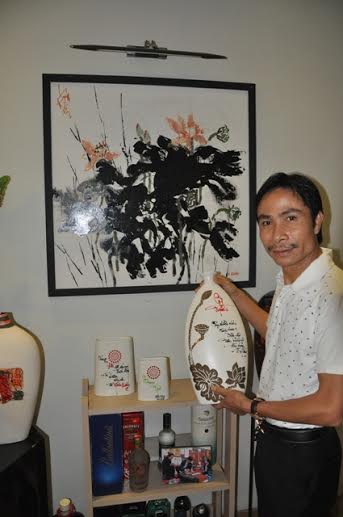 | សិប្បករ Tran Duc Tan ជាមួយផលិតផលគ្រឿងភាជន៍ Bat Trang (រូបថតៈ vovworld) |