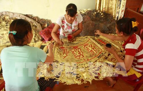 រួមជាមួយផលិតផលប្រាក់ដ៏ប៉ិនប្រសប ក្នុងប៉ុន្មានឆ្នាំថ្មីៗនេះ ភូមិ Dong Xam ក៏ល្បីឈ្មោះដោយផលិតផលឆ្លាក់សំរិទ្ធផងដែរ។ ក្នុងកម្មវិធីជួយឧបត្ថម្ភ អភិវឌ្ឍន៍ “ទ្រព្យសម្បត្តិបញ្ញាវៀតណាម” ឆ្នាំ២០១២ ក្រសួងវិទ្យាសាស្ត្រនិង បច្ចេកវិទ្យាបានជួយឧបត្ថម្ភភូមិរបរ Dong Xam អនុវត្តន៍គម្រោងការណ៍ “កសាង ស្លាក់សញ្ញាសំរាប់មុខរបរឆ្លាក់ប្រាក់ភូមិ Dong Xam”។ សិប្បករ Le Thanh ឲ្យដឹងថែមទៀតថា៖