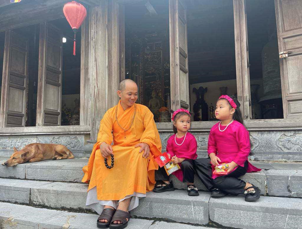 ព្រះសង្ឈនិងកុមារនៅទីរួមខេត្ត Truong Sa។ (រូបថត៖ VOV5/Vinh Phong) |