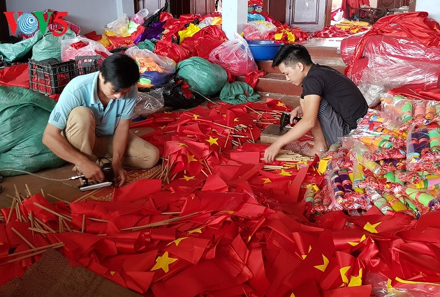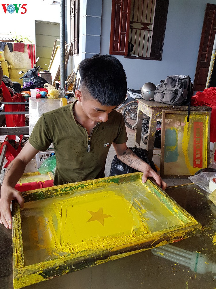 មូលដ្ឋានធ្វើទង់ជាតិមួយនៅភូមិ ទឺវ៉ិន (រូបថត៖ VOV) |