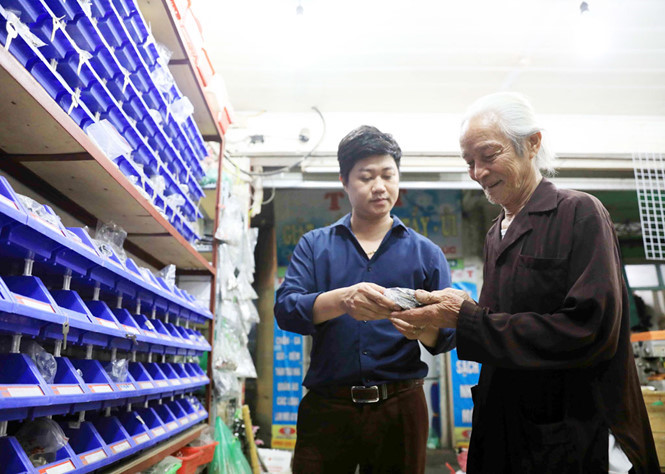 លោក Luu Duc My (ខាងឆ្វេង) និងឪពុកកំពុងត្រួតពិនិត្យកូនសោប្រភេទថ្មី (រូបថត៖ Thanhnien.vn) |