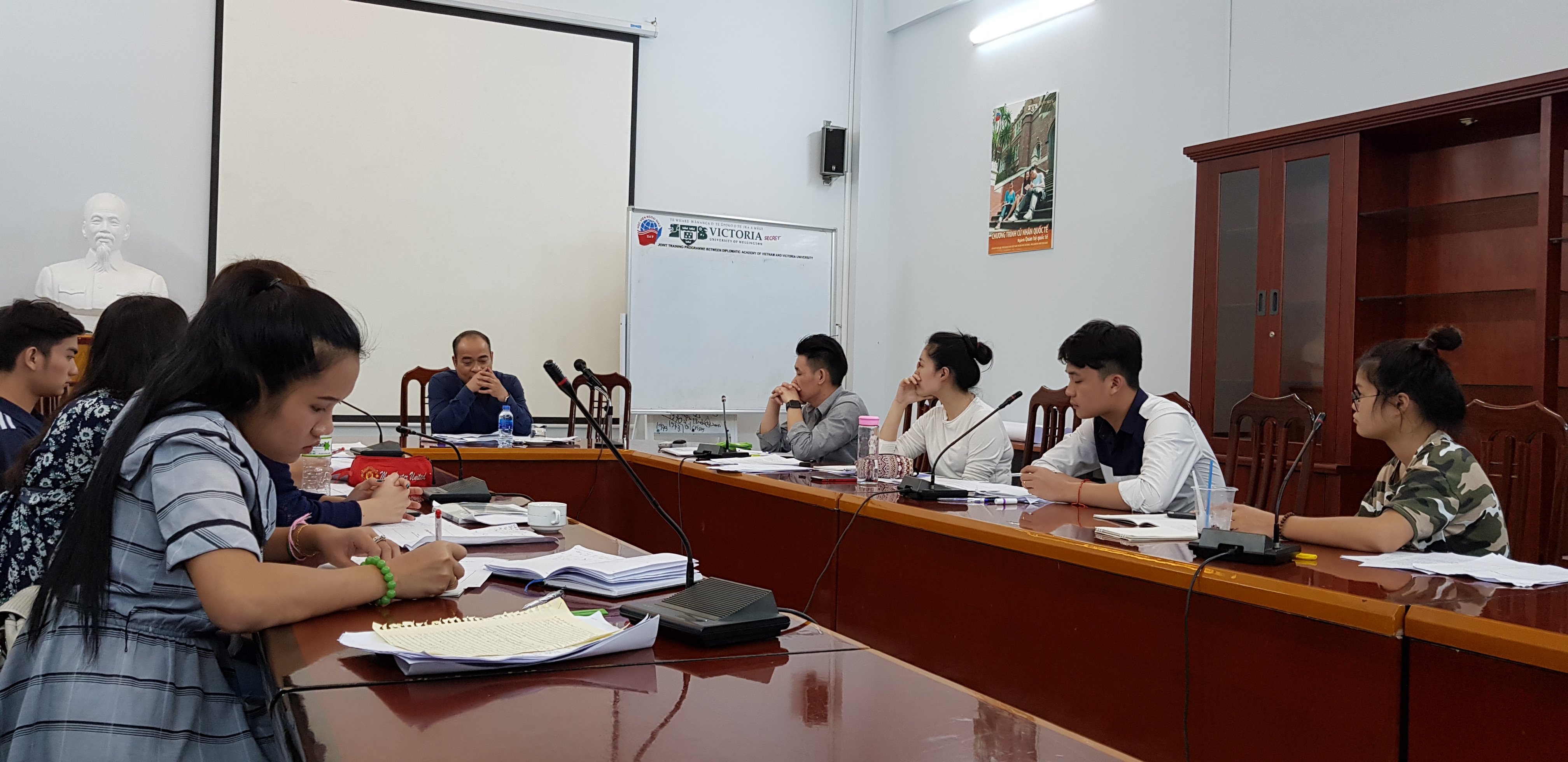 នៅម៉ោង ៦ និង ៣០ នាទី ថ្ងៃចន្ទ សាស្ដ្រាចារ្យមកពីវិទ្យាស្ថានការទូតវៀតណាមរួមជាមួយនិស្សិតឡាវឆ្នាំទី ៣ ទី ៤ ឬ សិក្ខាកាមបណ្ឌិតនិងបញ្ញាបត្រជាន់ខ្ពស់នៃវិទ្យាស្ថានការទូតអង្គុយជុំវិញតុមូលដើម្បីផ្ទៀងស្តាប់និងផ្លាស់ប្តូរមតិអំពីវិធីបកប្រែផ្ទាល់ក្នុងជំនួបប្រាស្រ័យជាន់ខ្ពស់រវាងប្រទេសទាំងពីរ។