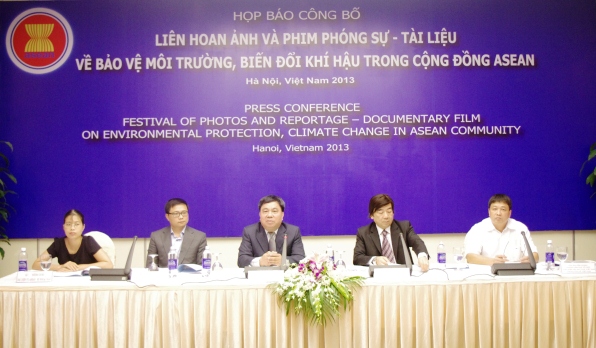 | សន្និសីទកាសែតអំពីរង្វាន់ “មហោស្រពរូបថត ខ្សែភាពយន្តឯកសារអំពីកិច្ចការពារបរិស្ថានបំរែបំរួលអាកាសធាតុក្នុងសហគមន៍ អាស៊ានឆ្នាំ ២០១៣” (Image: Vietnam+) |