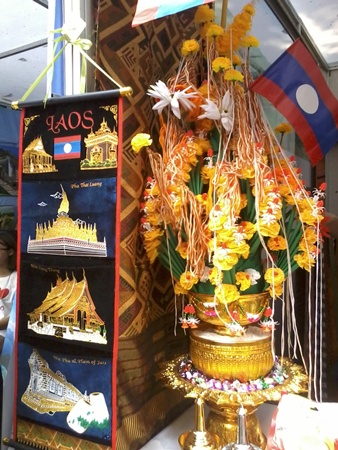 បន្ទាប់ពីស្តង់ទំនិញរបស់ស្ថានទូតទីម័រខាងកើត គឺស្តង់ទំនិញរបស់ស្ថានទូតឡាវ។ នៅទីនេះ ទស្សនិកជនអាចឃើញបណ្ដាផលិតផលសិប្បកម្មវិចិត្រសិល្បះប្រពៃណី ជាប្រាក់ ឬគំនូរ១អំពីទិដ្ឋភាពប្រទេសឡាវ …លៗ។ លោកស្រី Thong Mi ទីប្រឹក្សាវប្បធម៌ អប់រំ នៃស្ថានទូតឡាវ ប្រចាំនៅវៀតណាម បានចែករំលែកថា៖