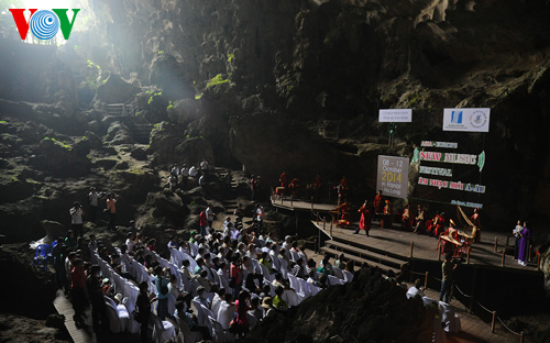 | ចំណុចលេចធ្លោបំផុតក្នុង Festival តូរតន្ត្រីលើកនេះគឺនាទីប្រគំភ្លេងប្រជាប្រិយនៅរូងភ្នំ Dau Go ឈូងសមុទ្រ Ha Long ខេត្ត Quang Ninh (Image: VOV) |