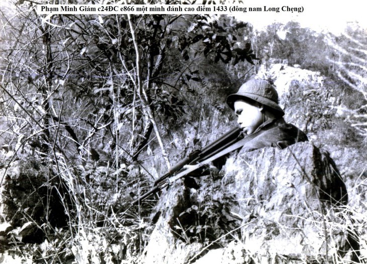 រូបថតវីរជន Pham Minh Giam នៅពេលចូលរួមប្រយុទ្ធនៅសមរភូមិឡាវ។ |