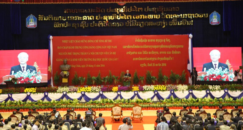 | ជំនួបសំណេះសំណាលរបស់អគ្គលេខាបក្ស លោក Nguyen Phu Trong នៅសាកល វិទ្យាល័យជាតិឡាវ |