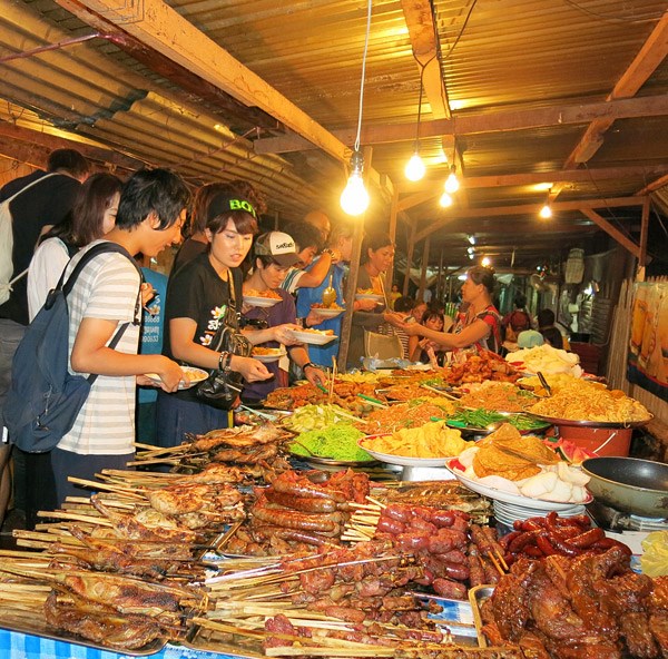 ផ្សាររាត្រីនេះចូលចិត្តមុខម្ហូបអាហាររបស់ប្រជាជនឡាវណាស់។ គេតែងតែជ្រើសរើស