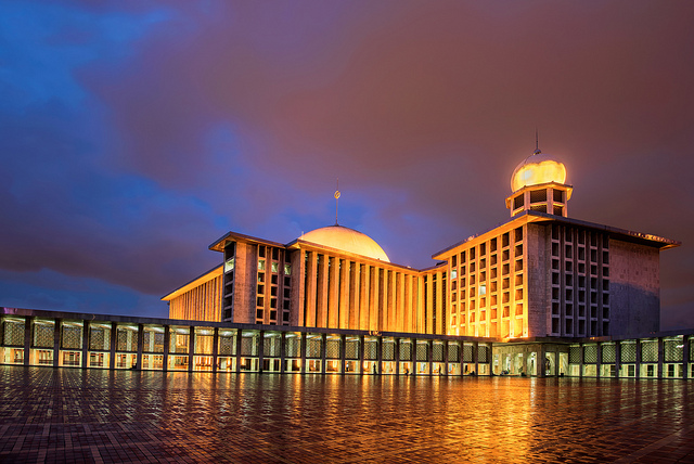 គ្រប់ទិសទី ក្នុងទូទាំងទីក្រុងJakarta។ នេះគឺជាវេលាដែលវិហារ Istiqlal បើកទ្វារទទួល