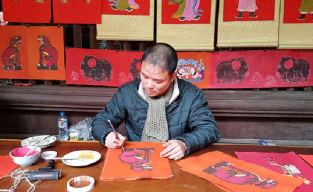 លោក Nguyen Sy Tien បច្ចុប្បន្នមានអាយុជិត ៦០ ឆ្នាំបានចែករំលែកថា៖ “មុខរបរធ្វើគំនូរបែបប្រពៃណីនេះមានតាំងពីយូរយារណាស់មកហើយ។ តាំងពីខ្ញុំនៅតូច ខ្ញុំបានលឺចាស់ទុំប្រាប់អំពីររបៀបធ្វើគំនូរ Kim Hoang។ ក្រុមគ្រួសាររបស់ខ្ញុំបានចាប់ផ្តើមបង្កើតឡើងប្រភេទគំនូរនេះ។ កាលនោះ នៅឆ្នាំ ១៩៤៥ ភាពក្រីក្ររីករាលដាល ហើយពុម្ភសម្រាប់ធ្វើគំនូរត្រូវរសាត់បាត់អស់តាមទឹកជំនន់ រហូតដល់បាត់បង់របរតែម្កង”។