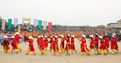 | ពិធីបុណ្យ Giong ក្នុងពេលទទួលប័ណ្ណជាបេតិកភ័ណ្ឌអរូិយរបស់ UNESCO (រូបថតៈ dantri.vn) |