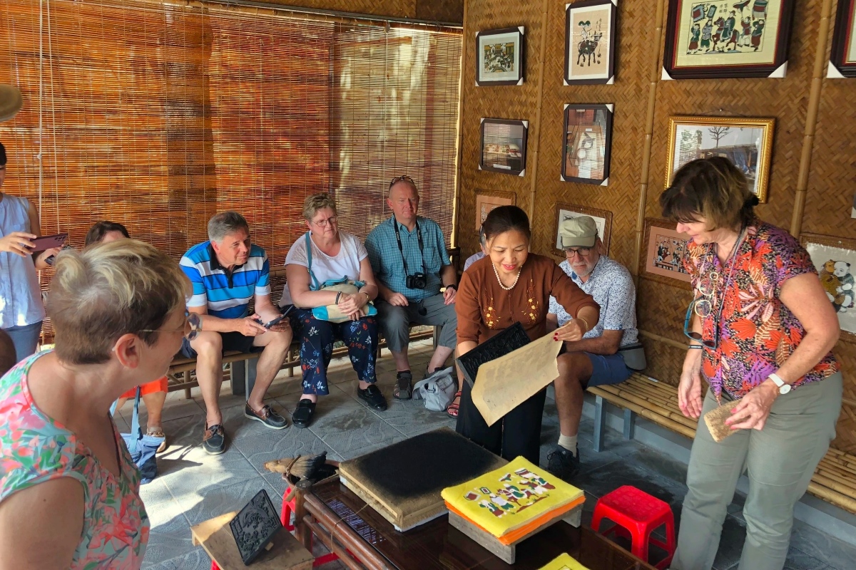 សិប្បករ Nguyen Dang Tam ឧទ្ទេសនាមអំពីគំនូរដុងហូនៅក្នុងព្រឹត្តិការណ៍ "ទិវាវៀតណាមនៅបារាំង ឆ្នាំ២០២៣"។