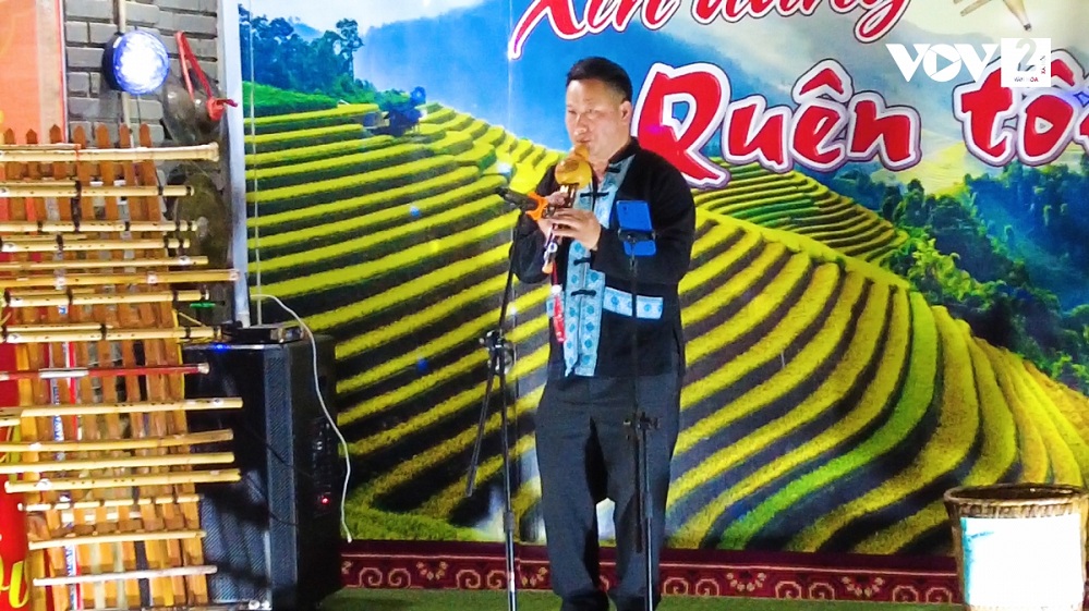 លោក Giang A Hai ប្រធានក្លឹបសិល្បៈប្រជាប្រិយ Hong Mi ក្នុងឈុតសម្ដែងខ្លុយ។ (រូបថត៖ VOV) |