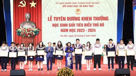 (VOVWORLD) - 2023~2024학년도 820명의 하노이 모범 학생 표창식이 5월 22일 오전 하노이에서 개최됐다.