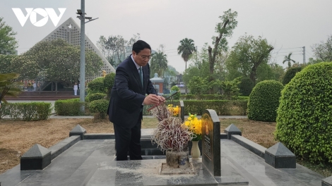 (VOVWORLD) - 디엔비엔푸(Điện Biên Phủ) 전투 승리 70주년(1954년 5월 7일~2024년 5월 7일)을 맞아 4월 17일 오전 팜 민 찐 총리와 출장단은 디엔비엔푸시 A1 국립 열사 묘지를 방문해 영웅 열사 추념 분향 및 헌화를 했다.