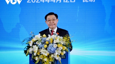 (VOVWORLD) - 4월 12일 오전 윈난성 쿤밍시에서 브엉 딘 후에 국회의장은 베트남과 중국 투자‧무역 협력 촉진 법률정책 포럼에 참석했다.