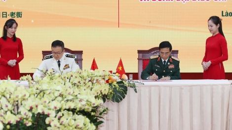 (VOVWORLD) - 베트남-중국 국경 방위 친선 교류 행사의 일환으로 4월 11일 오전 라오까이성에서 베트남 국방부 고위급 대표단과 중국 국방부 고위급 대표단 간의 회담이 개최됐다. 베트남 국방부 장관 판 반 장(Phan Văn Giang) 대장과 중국 국방부 부장인 둥쥔(董军) 상장이 회담을 공동 주재했다.